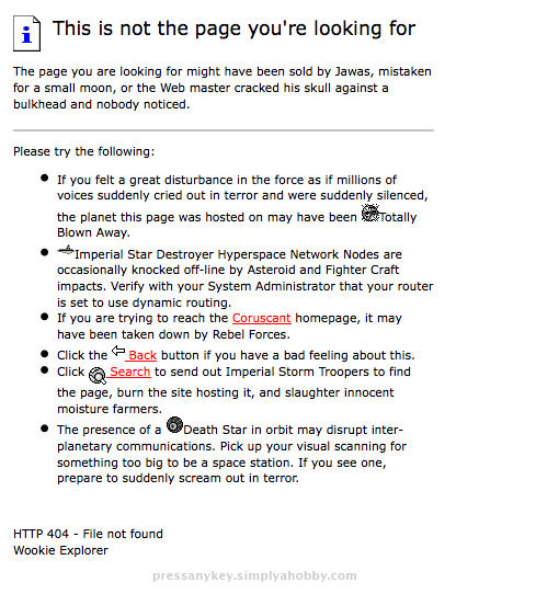 Here’s a little joke I came up with some time back in 2003. It’s a fake HTTP 404 error page with a Star Wars theme: