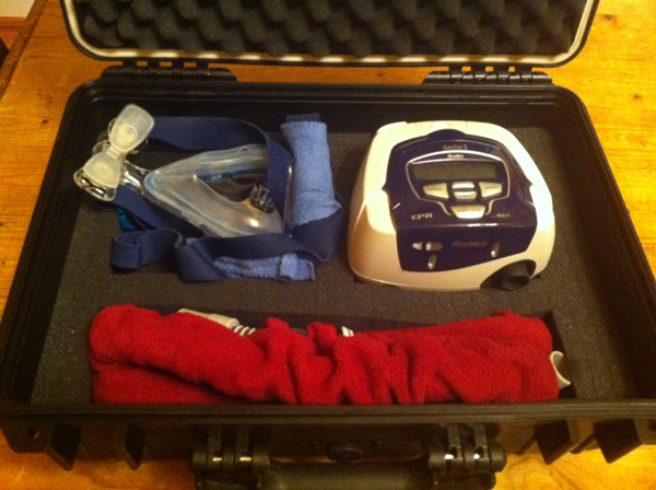 This week I decided to purchase a hard shell case that would offer more protection. I didn’t want to have to keep asking others to be careful about putting their luggage on top of the CPAP case. It wouldn’t take much to break the mask or hose (though the device itself would probably fine).