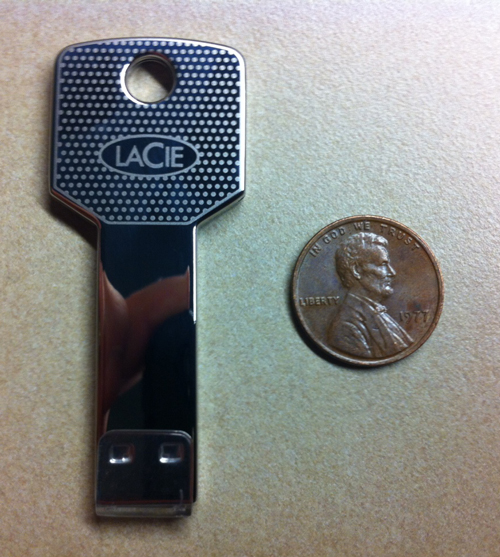 Well, being the computer geek that I am, I couldn’t resist ordering my own. I purchased the LaCie iamakey v2 (8 GB) from Amazon.com for about $25. From a usage standpoint it works as well as any other USB flash drive that I’ve owned before. Transfer speeds seem good. Most importantly, the key is made of metal and does fit nicely on a key ring.