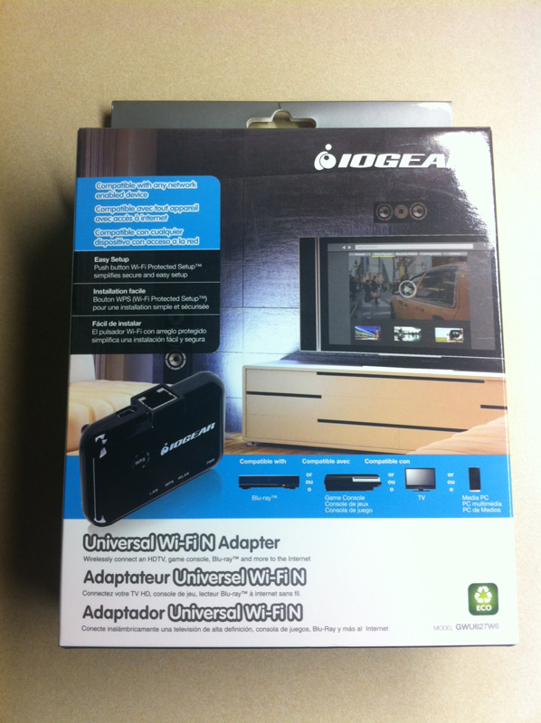 About a month ago I purchased an IOGear Universal WiFi N Adapter (GWU627W6) for about $40, which is a much more reasonable price than the other adapter and can easily be used with any ethernet-compatible device. A week ago I went over to my mother’s house and swapped out the AP with the IOGear device.