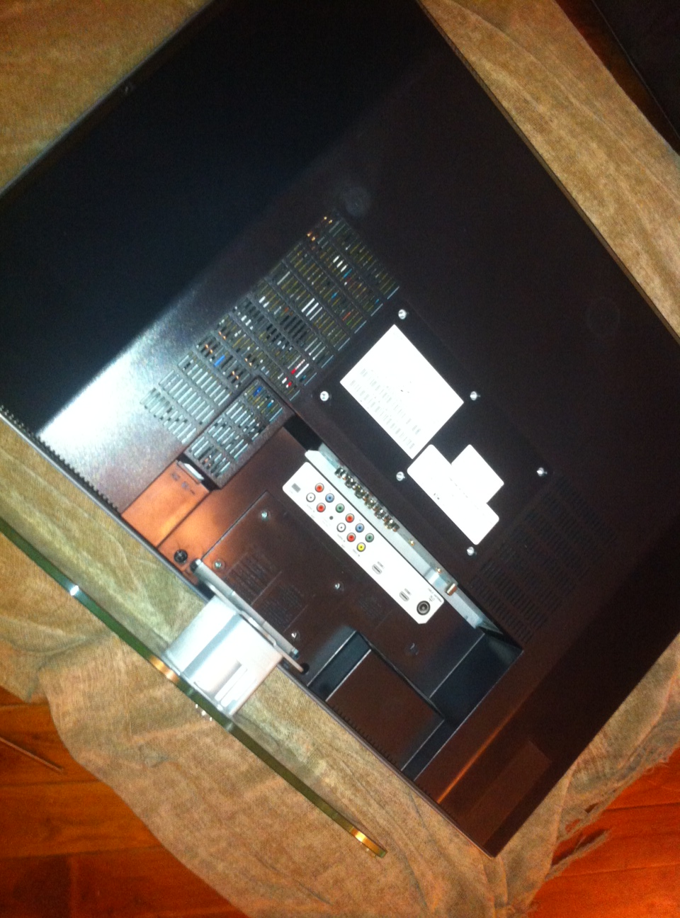 Opening the system was relatively simple. There are probably about eight hex screws on the back side of the TV (and four larger screws if the TV is mounted to the base that came with it). Note that when you flip the TV so the screen is facing down that it should be set on a soft surface such as a blank or a bed. The first time I opened it I ended up scratching part of the bezel on our wood floors.