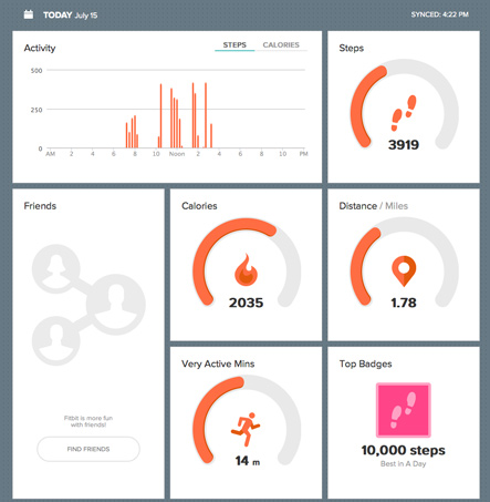 Over the course of about a month it became a habit to wear the device at almost all times. The synched data can be viewed from FitBit’s Website: