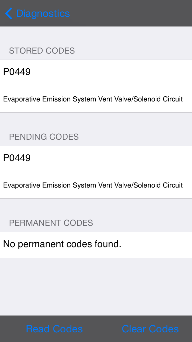 About a month ago my car began showing an engine code, which appeared after I ran out of gas (that is its own story). Using DashCommand on my iPhone, and connecting to my car, I was able pull the following code: