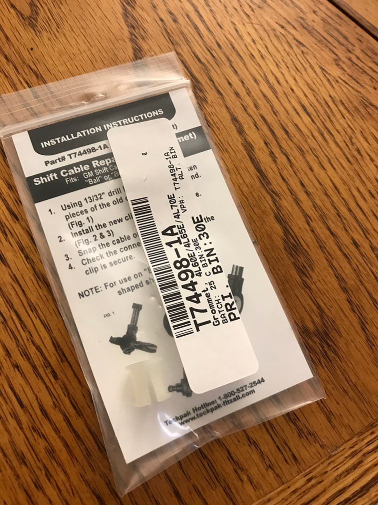 At the time that I’m writing this post I only found one item on Amazon for this (just under $8). I did not order from this shop, so I do not know anything about the actual product or service but the image and part number match: Teckpak T744981A Shift Cable Repair Grommet